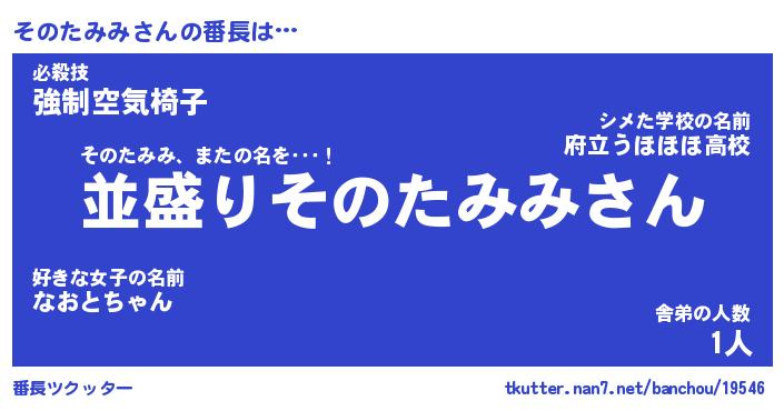 | ファンタジー風あだ名 | 『ソノフェル』『エターナルソノタミミー』 |