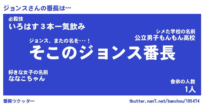 | 肩書あだ名 | 『ジョンス店長』『ジョンス総理大臣』 |