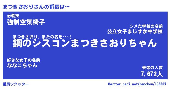 | 伝説のあだ名 | 『封印されしスナイパーまつきさおり』 |