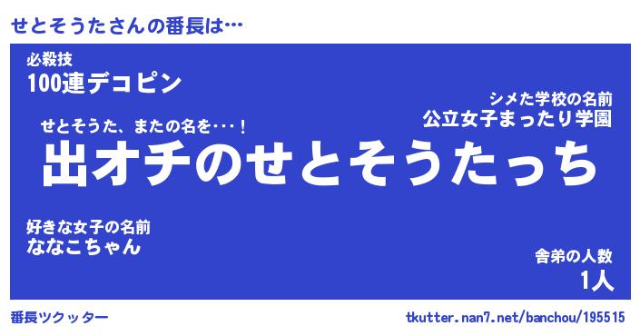 | 肩書あだ名 | 『せとそうた店長』『せとそうた大統領』 |