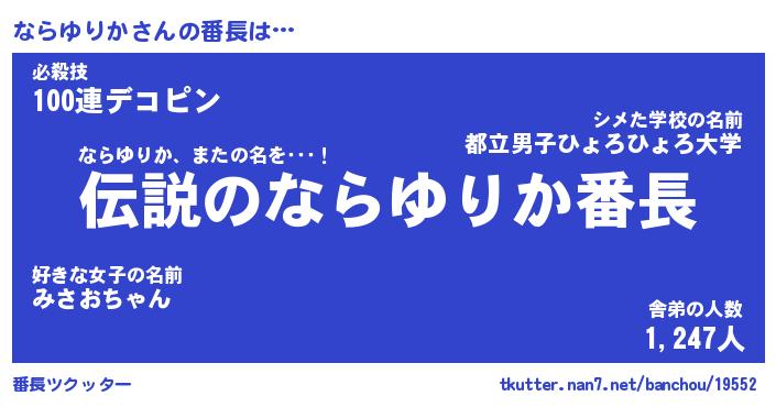 | 肩書あだ名 | 『ならゆりか御曹司』『ならゆりか大統領』 |