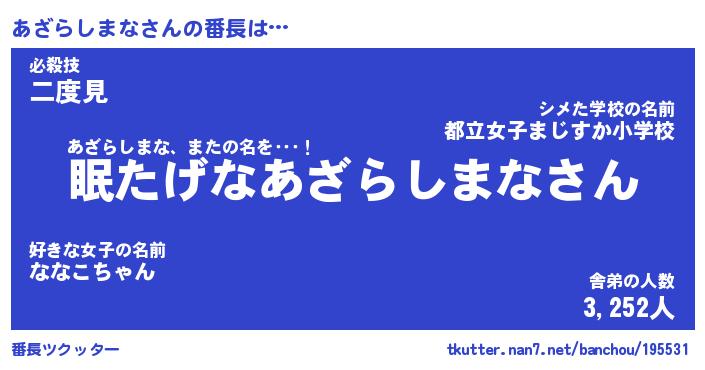 | 2回繰り返すあだ名 | 『あざあざ』『ああざざ』『ぬるぬる』 |