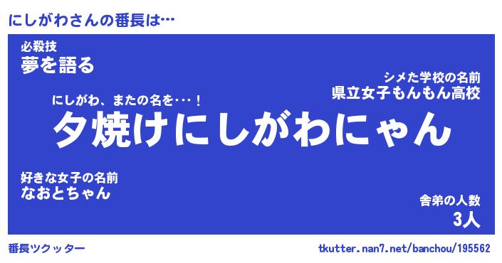 | 肩書あだ名 | 『にしがわCEO』『にしがわ大統領』 |