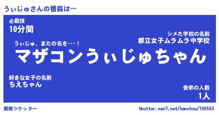 | 伝説のあだ名 | 『封印されしスナイパーうぃじゅ』 |