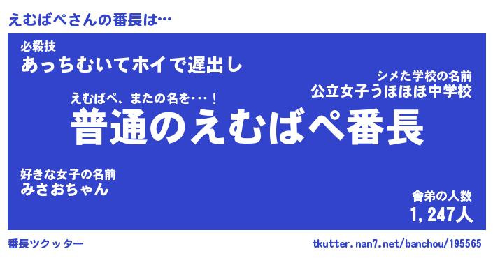 | 意味不明あだ名 | 『ペロリンえむばぺ』『永久保存えむばぺ』 |