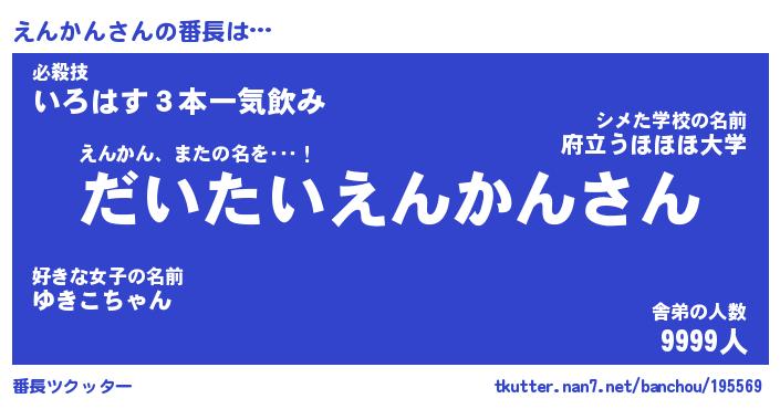 | 肩書あだ名 | 『えんかんCEO』『えんかん総理大臣』 |