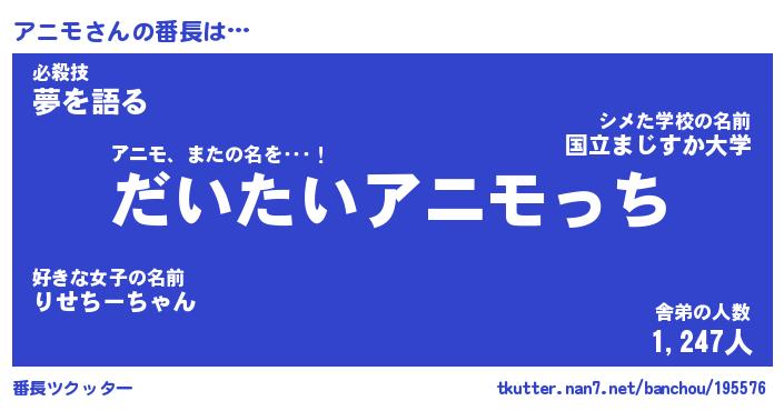 | ポケモン風あだ名 | 『アニチュウ』『アニモダネ』 |