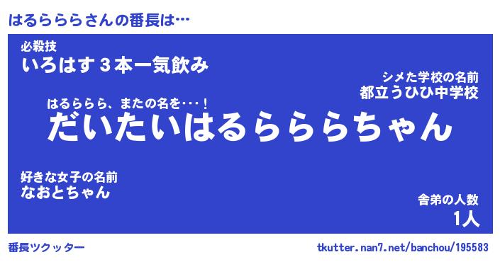 | ファンタジー風あだ名 | 『ハルフェル』『エターナルハルラララー』 |