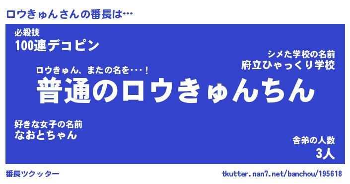| ヘコむあだ名 | 『ロウにゅー』『つくし』『ロウ太郎』 |