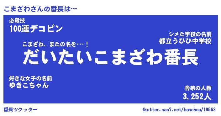 | 肩書あだ名 | 『こまざわ御曹司』『こまざわ大統領』 |