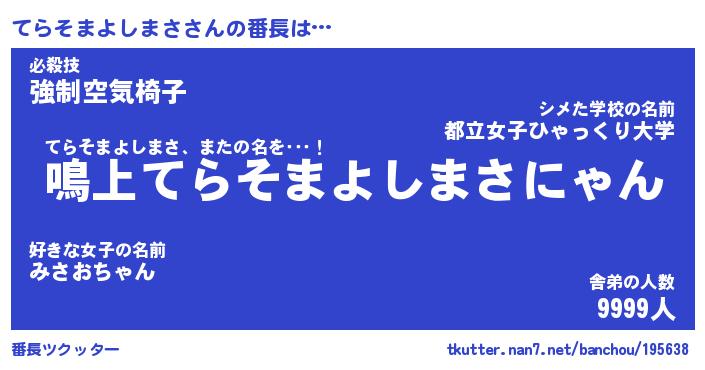 | 意味不明あだ名 | 『ペロリンてらそまよしまさ』 |