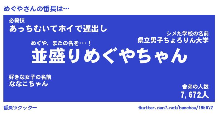 | 意味不明あだ名 | 『ペロリンめぐや』『めぐやフォーエバー』 |