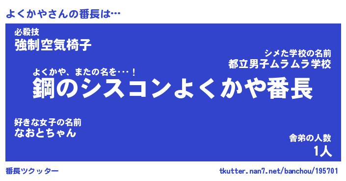 | 意味不明あだ名 | 『ペロリンよくかや』『永久保存よくかや』 |