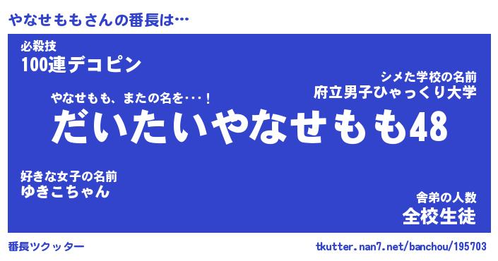 | 肩書あだ名 | 『やなせもも社長』『やなせもも総理大臣』 |