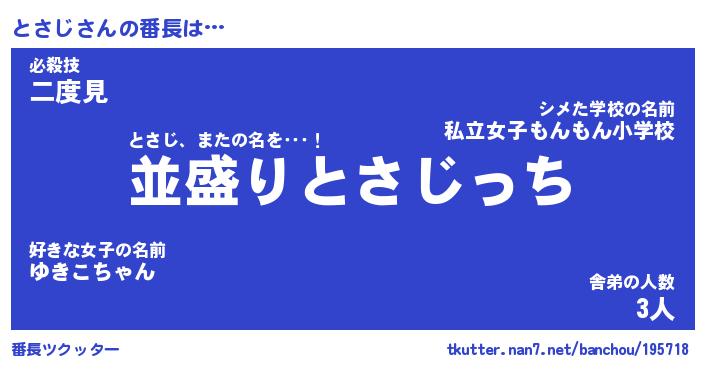 | ピコ太郎風あだ名 | 『トコ一郎』『ピト三郎』『トサ一郎』 |