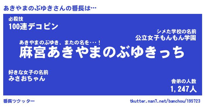 | 肩書あだ名 | 『あきやまのぶゆき御曹司』 |