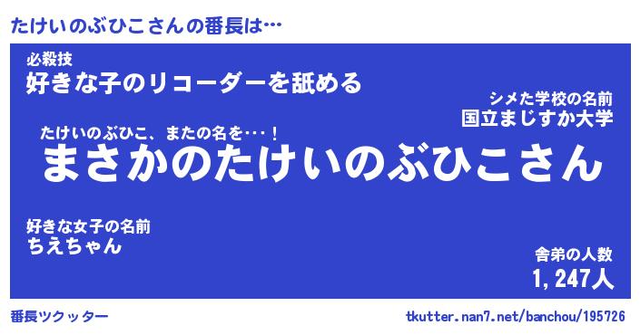 | ヘコむあだ名 | 『たけもー』『つくし』『たけぷりん』 |