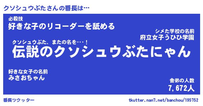 | ヘコむあだ名 | 『クソふぇ~』『つくし』『クソを』 |