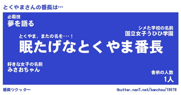 | 意味不明あだ名 | 『ペロリンとくやま』『永久保存とくやま』 |