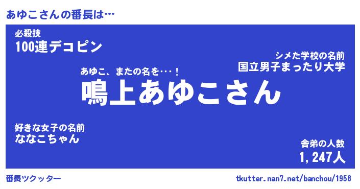 | 意味不明あだ名 | 『ペロリンあゆこ』『あゆこフォーエバー』 |