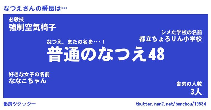 | 肩書あだ名 | 『なつえ社長』『なつえ国家主席』 |