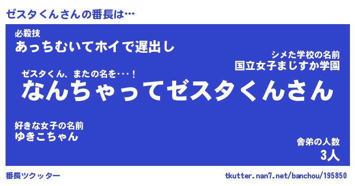 | ファンタジー風あだ名 | 『ゼスフェル』『エターナルゼスタクンー』 |