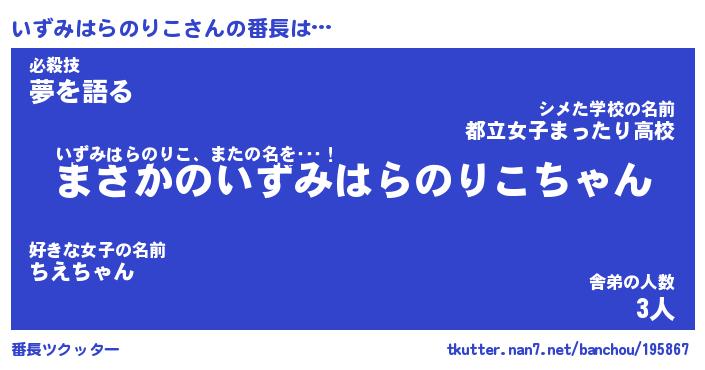 | 伝説のあだ名 | 『伝説のスナイパーいずみはらのりこ』 |