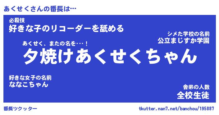 | ヒーロー風カッコイイあだ名 | 『スーパーアクセク』『暗黒騎士アク』 |