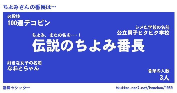 | 肩書あだ名 | 『ちよみ社長』『ちよみ総理大臣』 |
