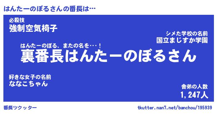 | ポケモン風あだ名 | 『ハンチュウ』『ハンタダネ』 |