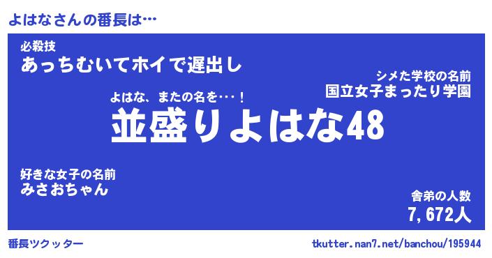 | 伝説のあだ名 | 『不死鳥のスナイパーよはな』 |