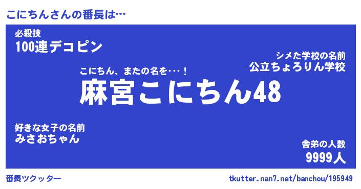 | 意味不明あだ名 | 『ペロリンこにちん』『永久保存こにちん』 |