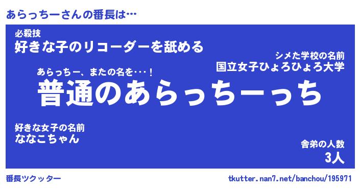 | ピコ太郎風あだ名 | 『アコ一郎』『ピア五郎』『アラ五郎』 |