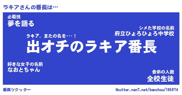 | ヘコむあだ名 | 『ラキにー』『豆乳』『ラキっちょ』 |