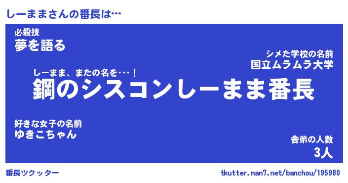 | 肩書あだ名 | 『しーまま店長』『しーまま国家主席』 |