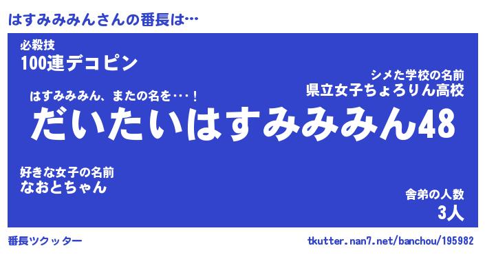 | 肩書あだ名 | 『はすみみみん御曹司』 |