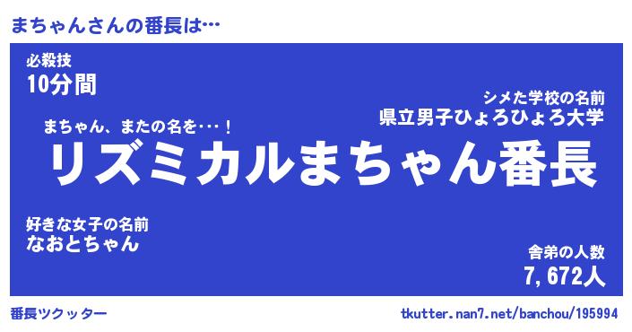 | 意味不明あだ名 | 『ペロリンまちゃん』『永久保存まちゃん』 |