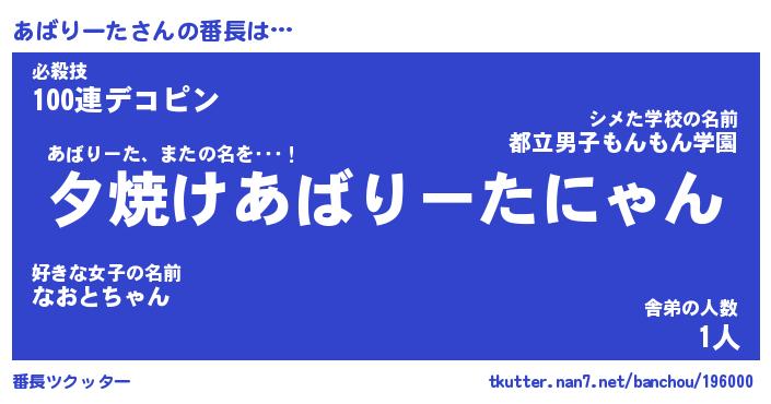 | ヒーロー風カッコイイあだ名 | 『スーパーアバリータ』『黄金騎士アバ』 |