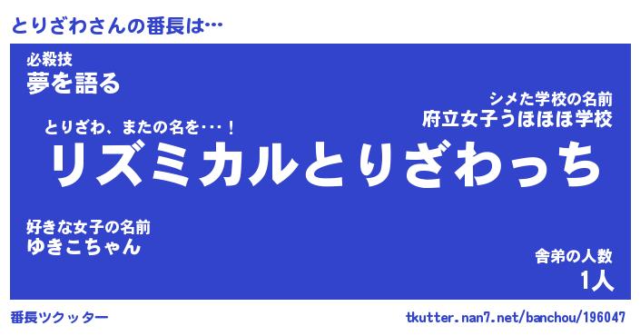 | 伝説のあだ名 | 『伝説のスナイパーとりざわ』 |
