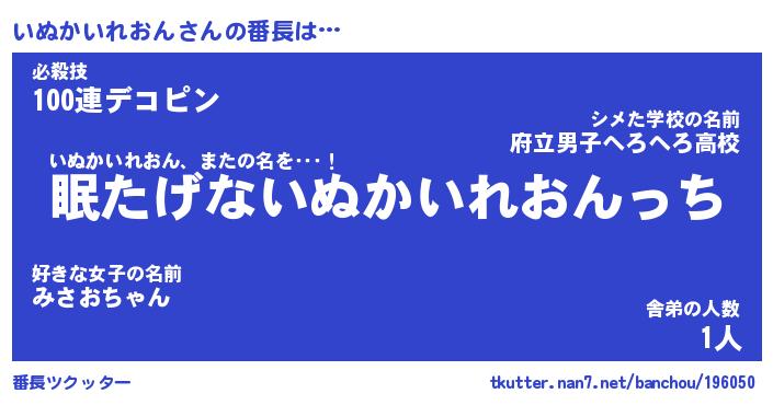 | 伝説のあだ名 | 『封印されしスナイパーいぬかいれおん』 |
