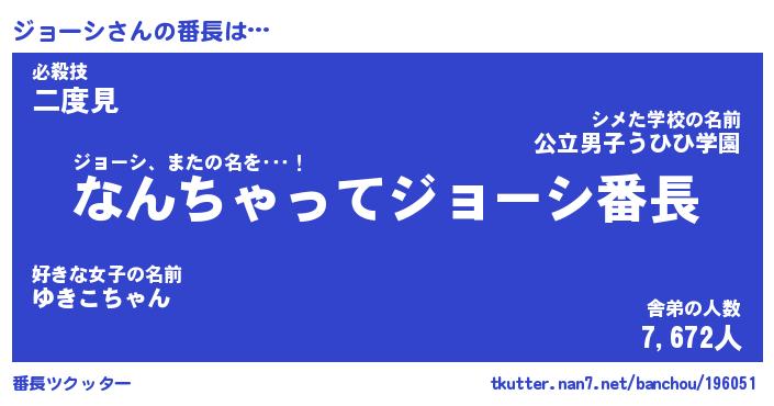 | ヒーロー風カッコイイあだ名 | 『スーパージョーシ』『炎刃騎士ジョ』 |