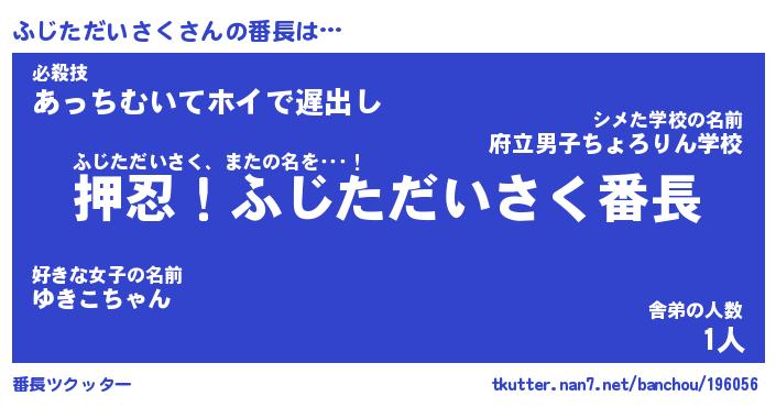 | 伝説のあだ名 | 『封印されしスナイパーふじただいさく』 |