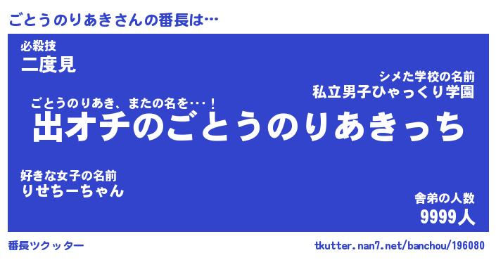 | 肩書あだ名 | 『ごとうのりあき御曹司』 |