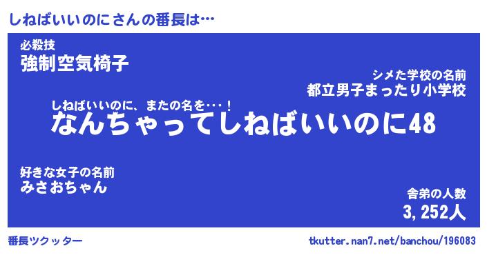 | 2回繰り返すあだ名 | 『しねしね』『ししねね』『うるうる』 |
