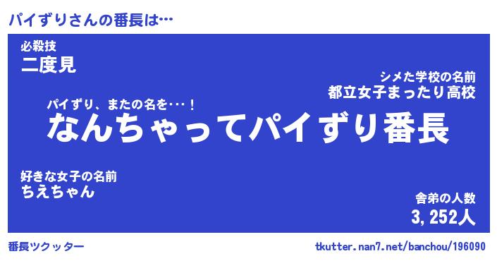 | 意味不明あだ名 | 『ペロリンパイずり』『永久保存パイずり』 |