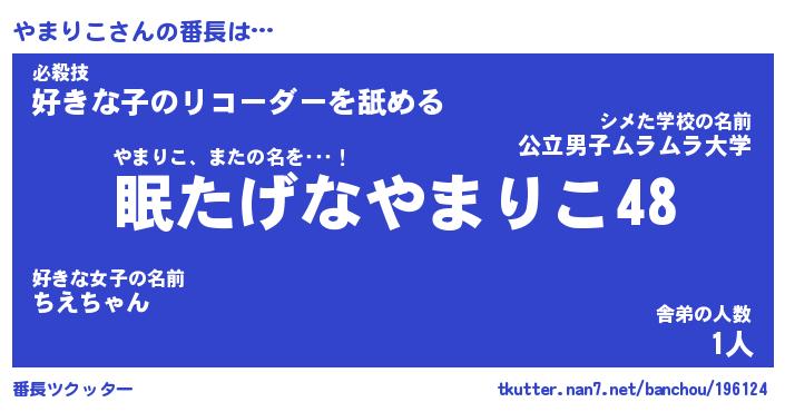 | 意味不明あだ名 | 『ペロリンやまりこ』『永久保存やまりこ』 |