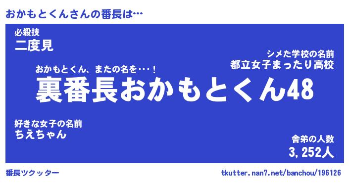 | 2回繰り返すあだ名 | 『おかおか』『おおかか』『ぬれぬれ』 |