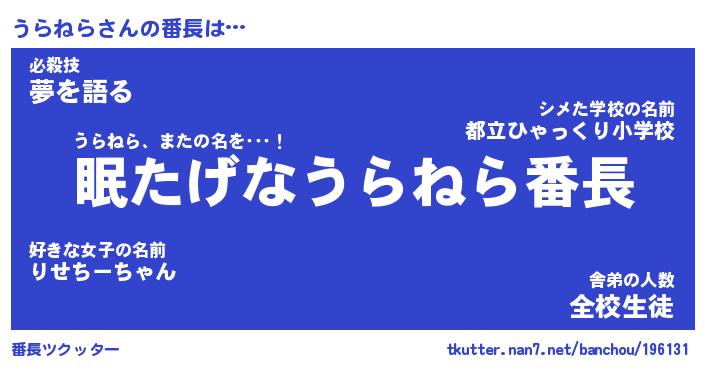 | 肩書あだ名 | 『うらねら店長』『うらねら大統領』 |