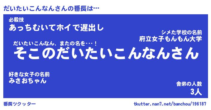 | 2回繰り返すあだ名 | 『だいだい』『だだいい』『おたおた』 |