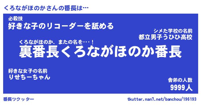 | 伝説のあだ名 | 『不死鳥の竜騎士くろながほのか』 |